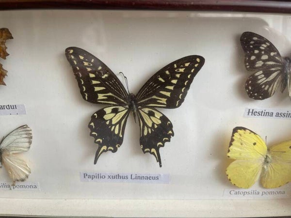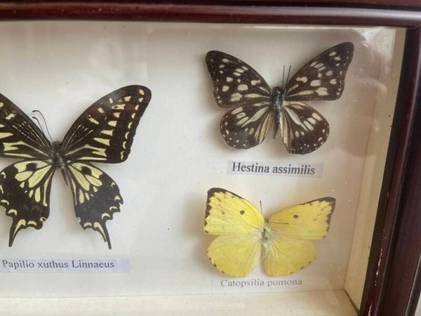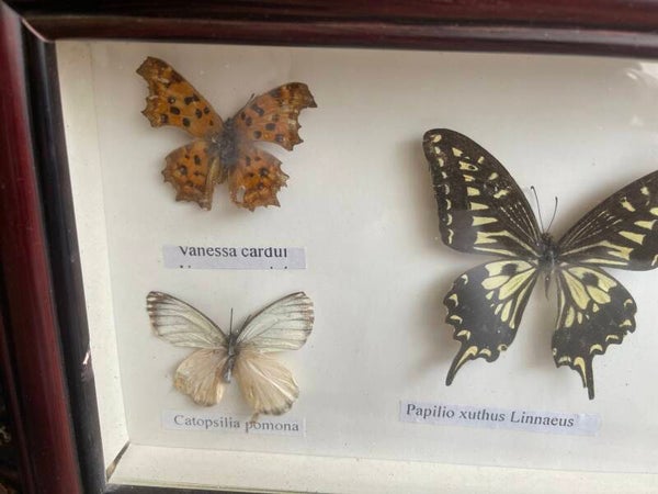 Hoe mooi zijn deze echte vlinders gezet in een houten kader. De vijf vlinders zijn elk inclusief naam gezet. Allemaal verschillend en toch samen een geheel. Wat een prachtig kader is dit zo!