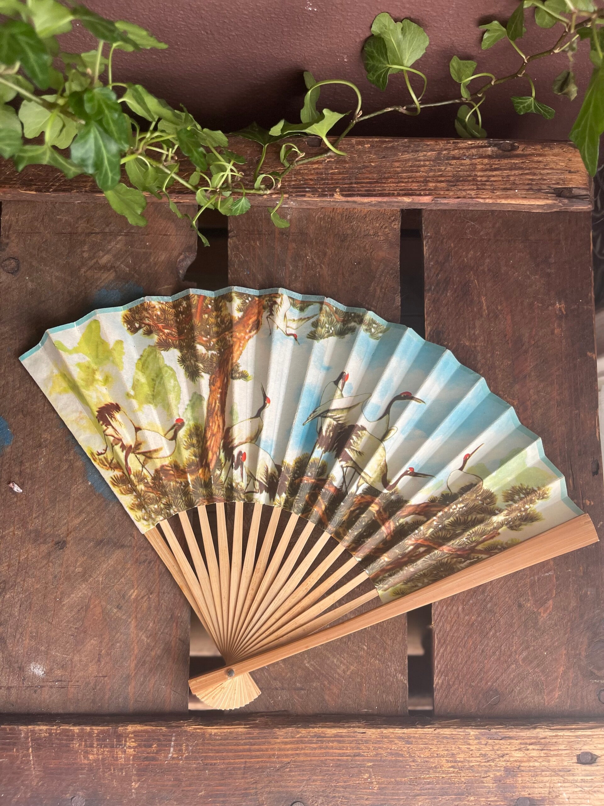 Set van 2 mooie waaiers in Oosterse stijl. De een met bloemen en de andere met kraanvogels. Prachtig!