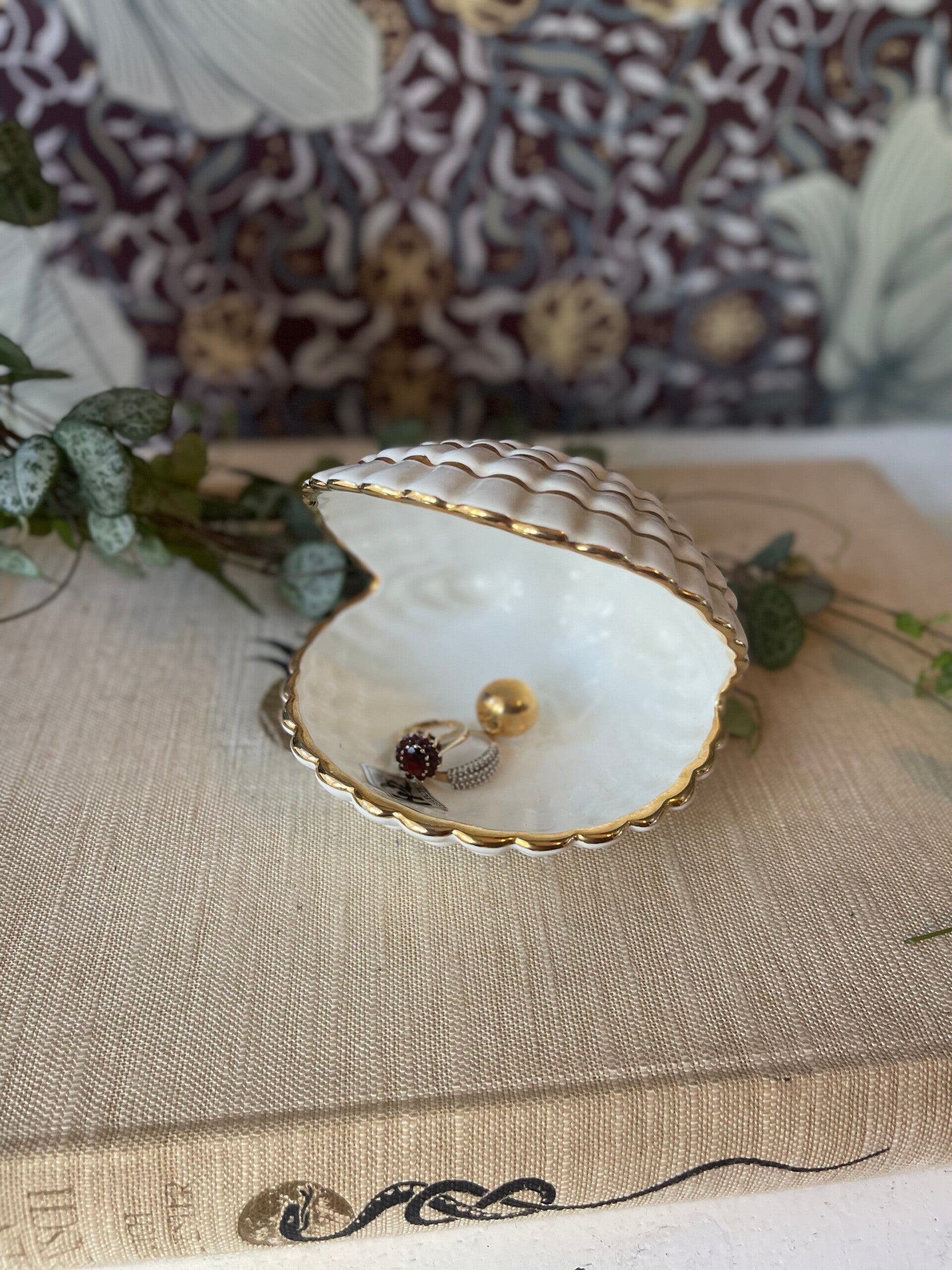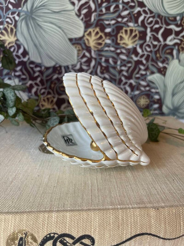 Je mooiste sieraden verdienen ook een beauty van een bewaarplekje. Deze porseleinen schelp met gouden parel is it! In wit met gouden details een chique item op je kaptafel. Inclusief sticker van de fabrikant.