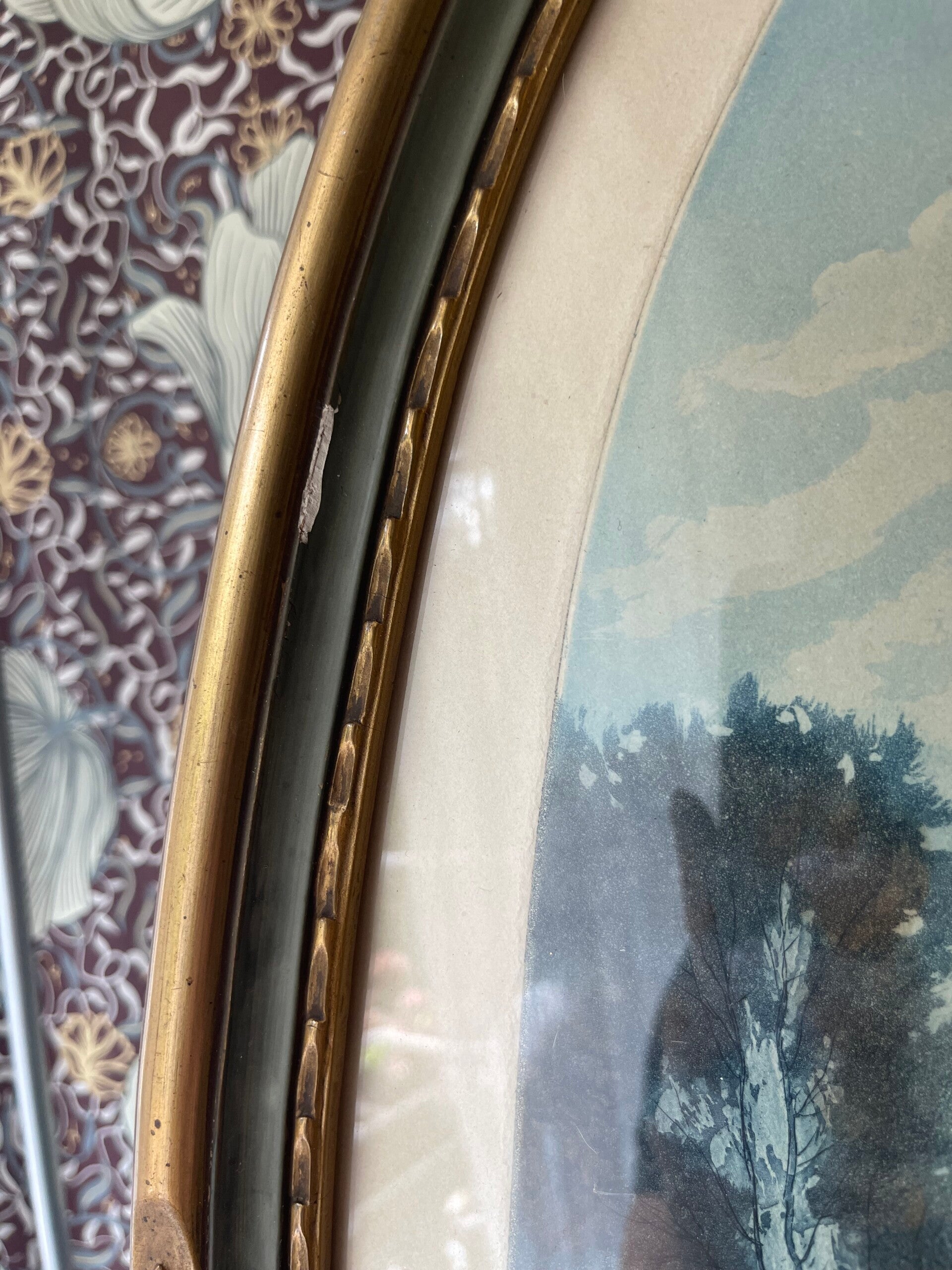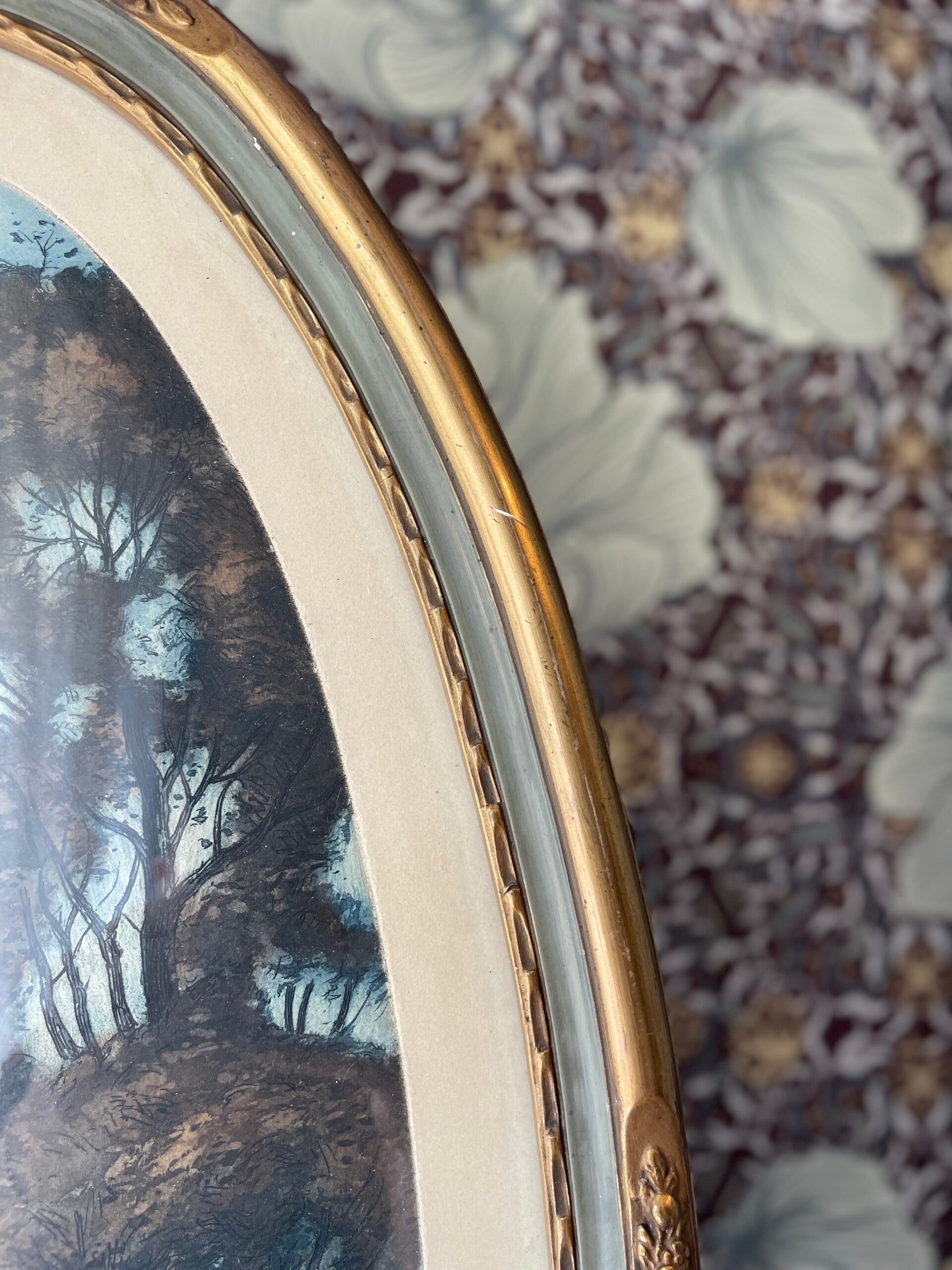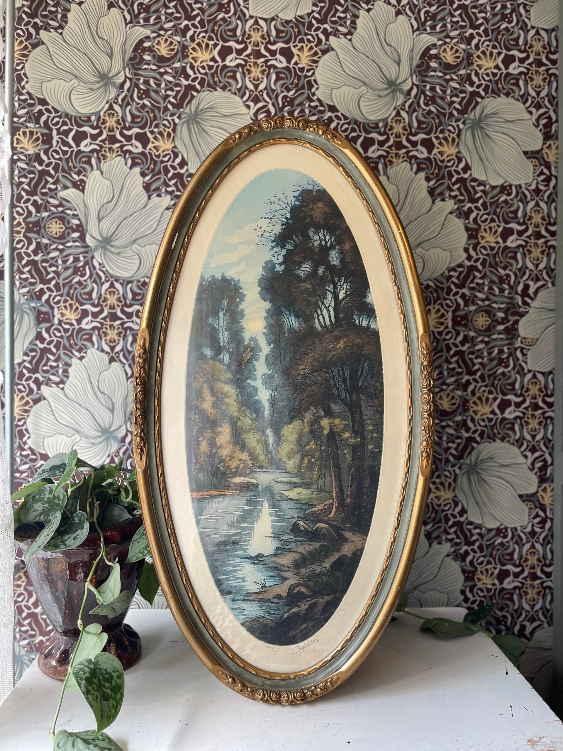 Prachtige ovale vintage lijst met plaat van een bos tafereel. Hoe mooi is dit, wij blijven er naar kijken. Ook de vorm is prachtig en uniek! In combinatie met de lijst een waar pareltje! Lijst heeft vintage oneffenheden, dit is meegenomen in de prijs.