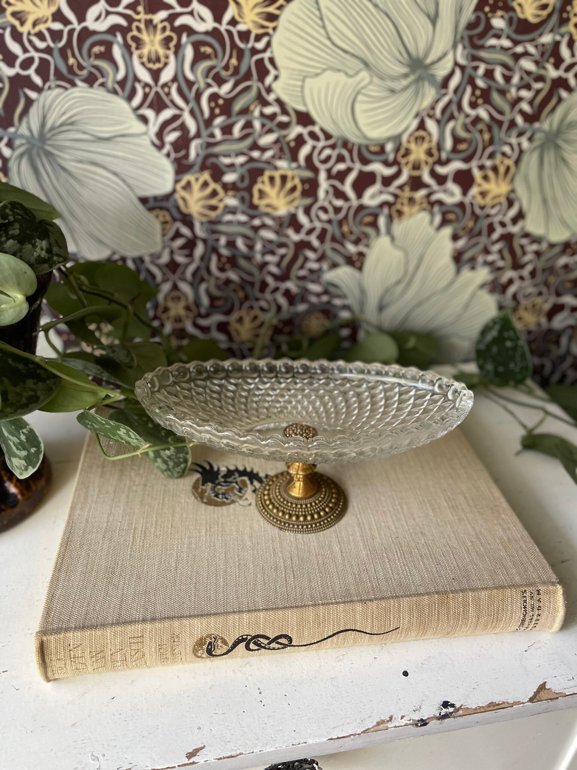 Hoe leuk is dit ovale schaaltje op pootje. Met geperst glas in mooie vorm ideaal om bonbons op te serveren.