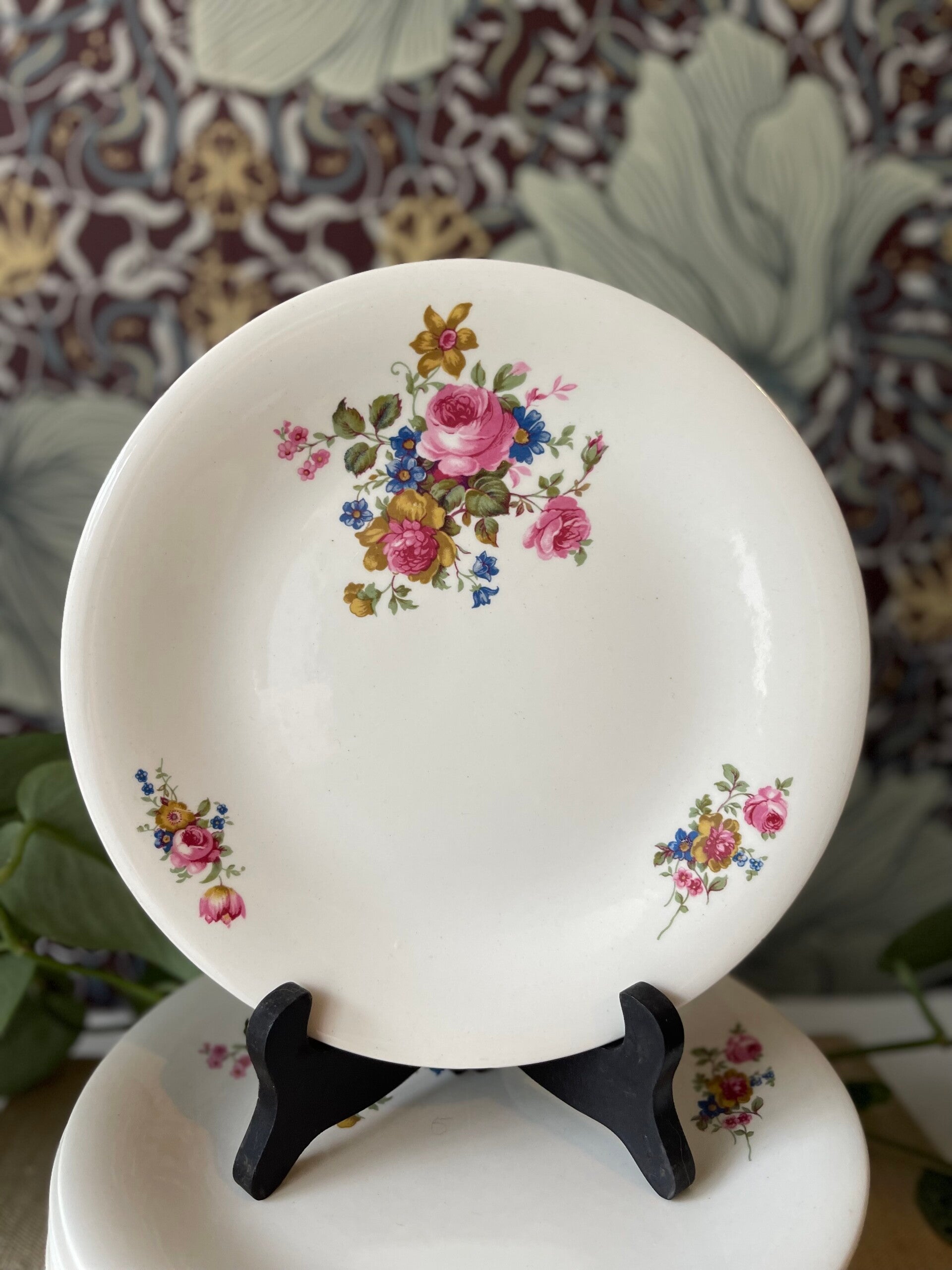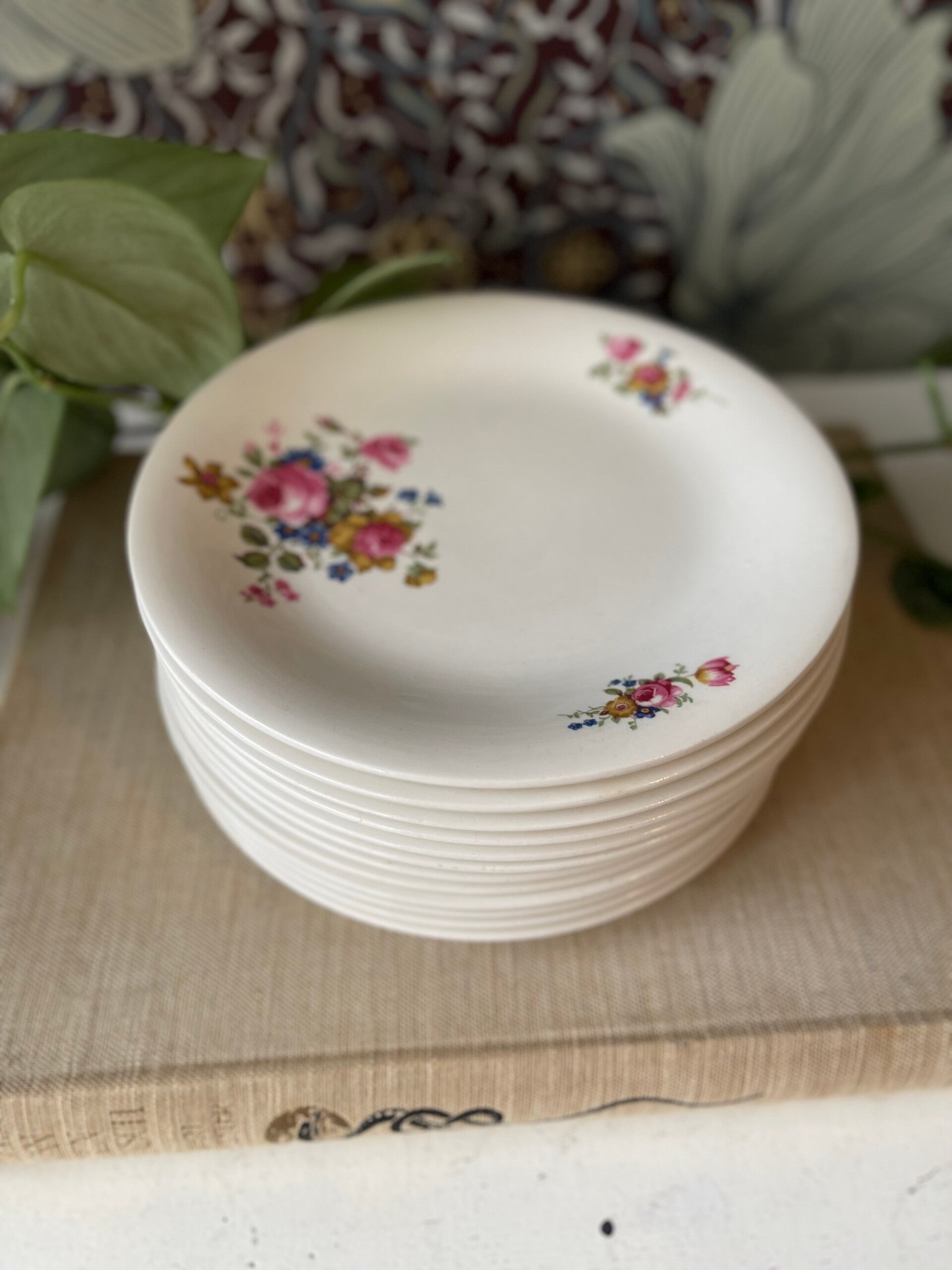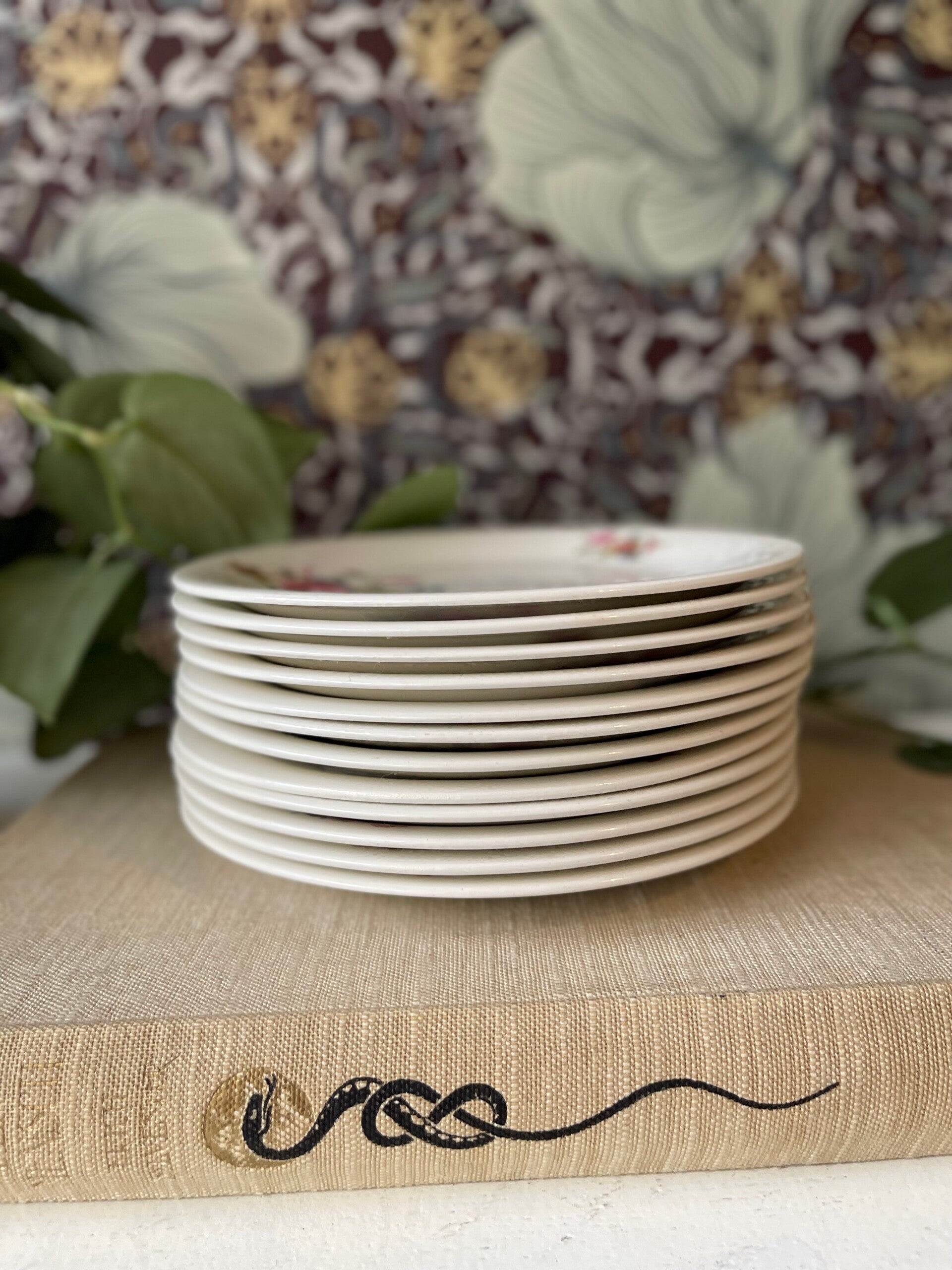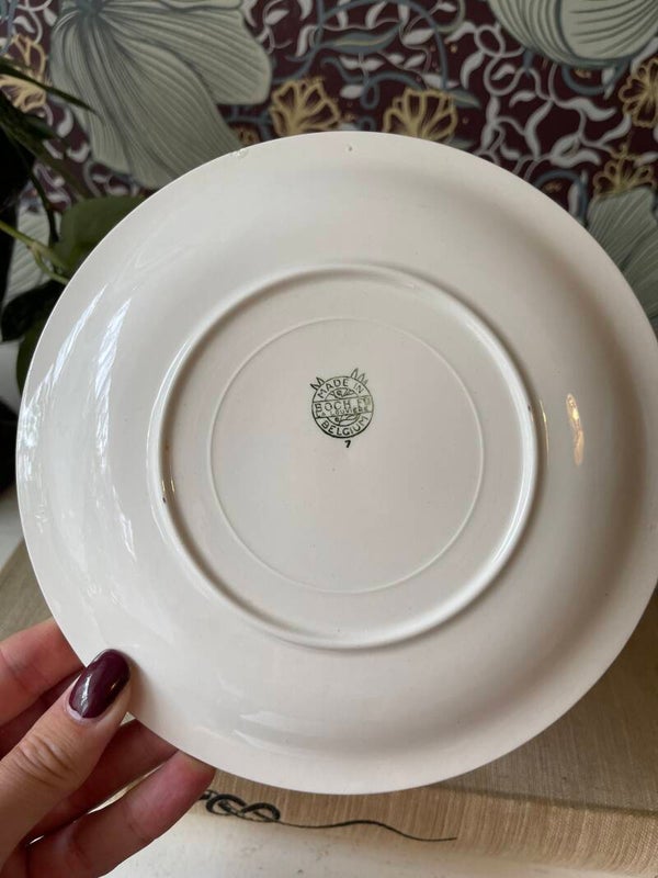 Prachtige set van 12 ontbijtborden van Boch. Het porselein is versierd met bloemen, wat een te leuke set! Ook te gebruiken als gebaksbordjes of tijdens een tapas avondje. Onderop gesigneerd.