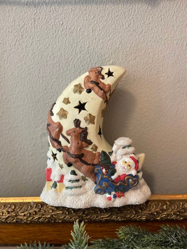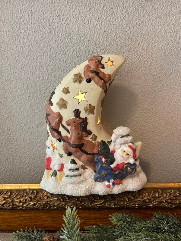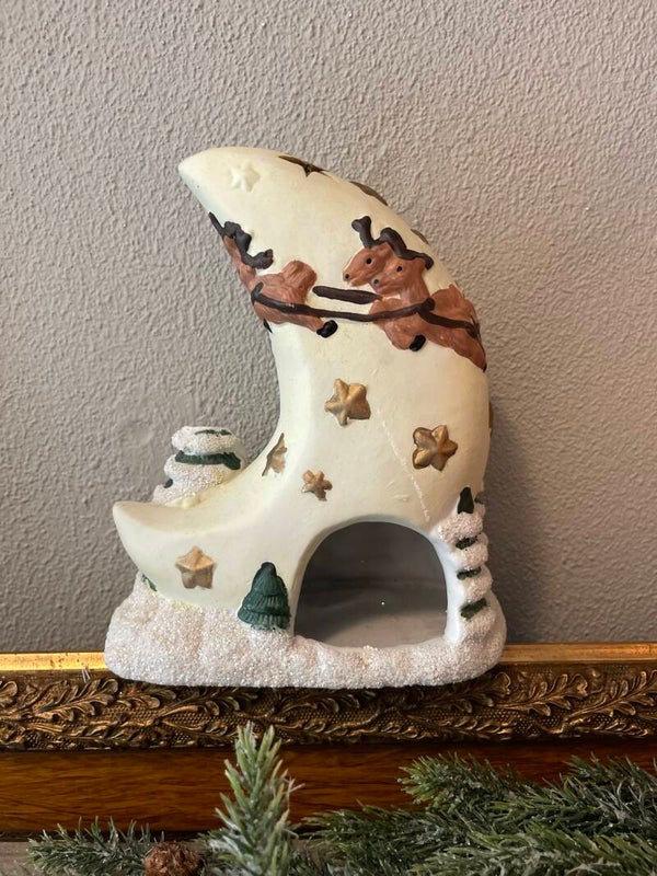 Aardewerk maan voor waxinelichtje. Het licht schijnt mooi door de sterren heen en de lichte glitter geeft een leuk effect. ♛ 17 cm hoog