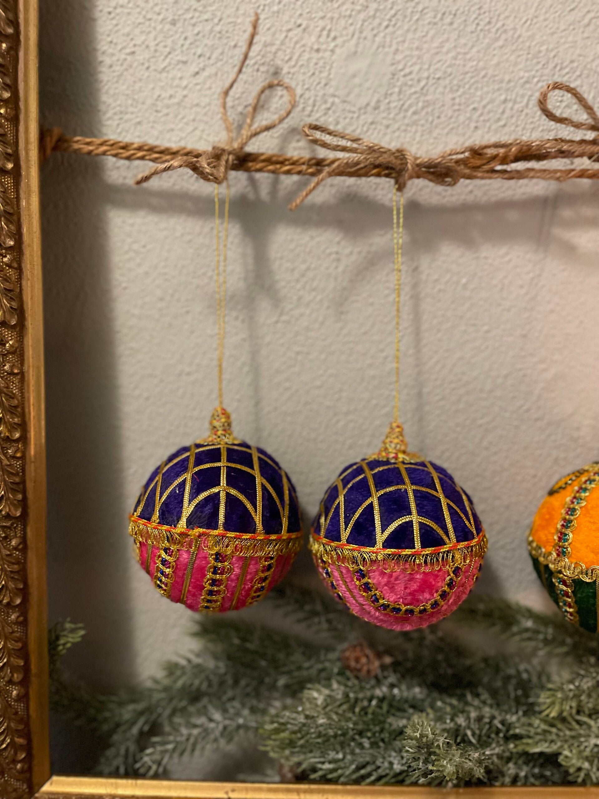 Indiase kerstballen van stof. 4 stuks in 2 kleuren.