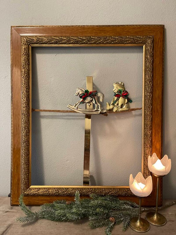 Vintage deurhanger voor een kerstkrans. Met aanschuifbaar een beer of paard.