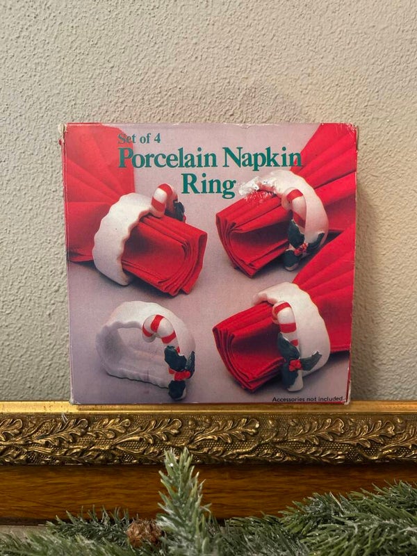 Porseleinen servetringen met kerstdecoratie. De set bestaat uit 4 servetringen.