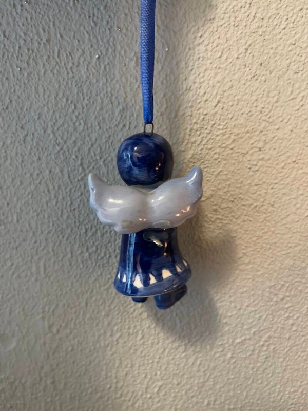 Porseleinen ornamentje van engeltje in blauw