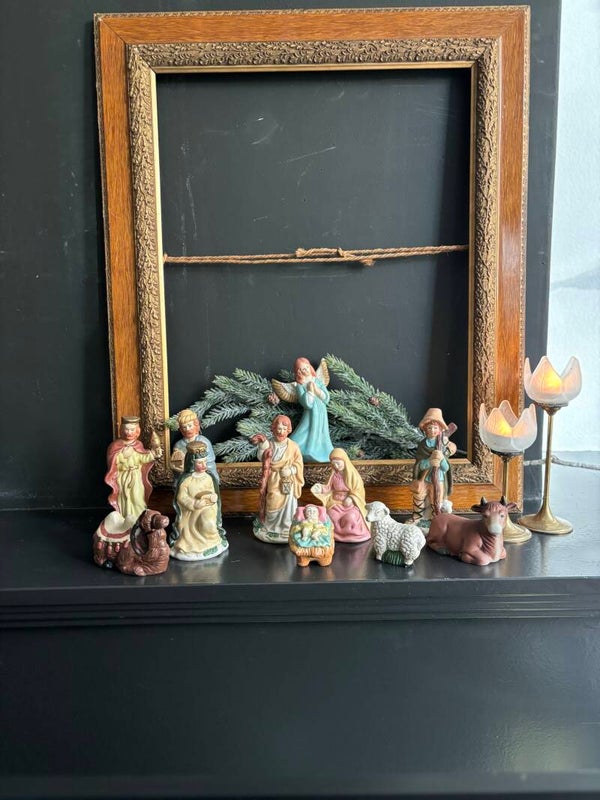 Hoe mooi is dit bisquit kerst stalletje. Voor onder de boom of een mooi plekje op de kast. De set is 11 delig en bestaat uit kindje Jezus, Maria, Jozef, Engel, de 3 wijzen uit het Oosten met kameel en een herder met schaap en koe. De set komt in de originele doos. De beeldjes zijn gemiddeld 16 cm hoog.