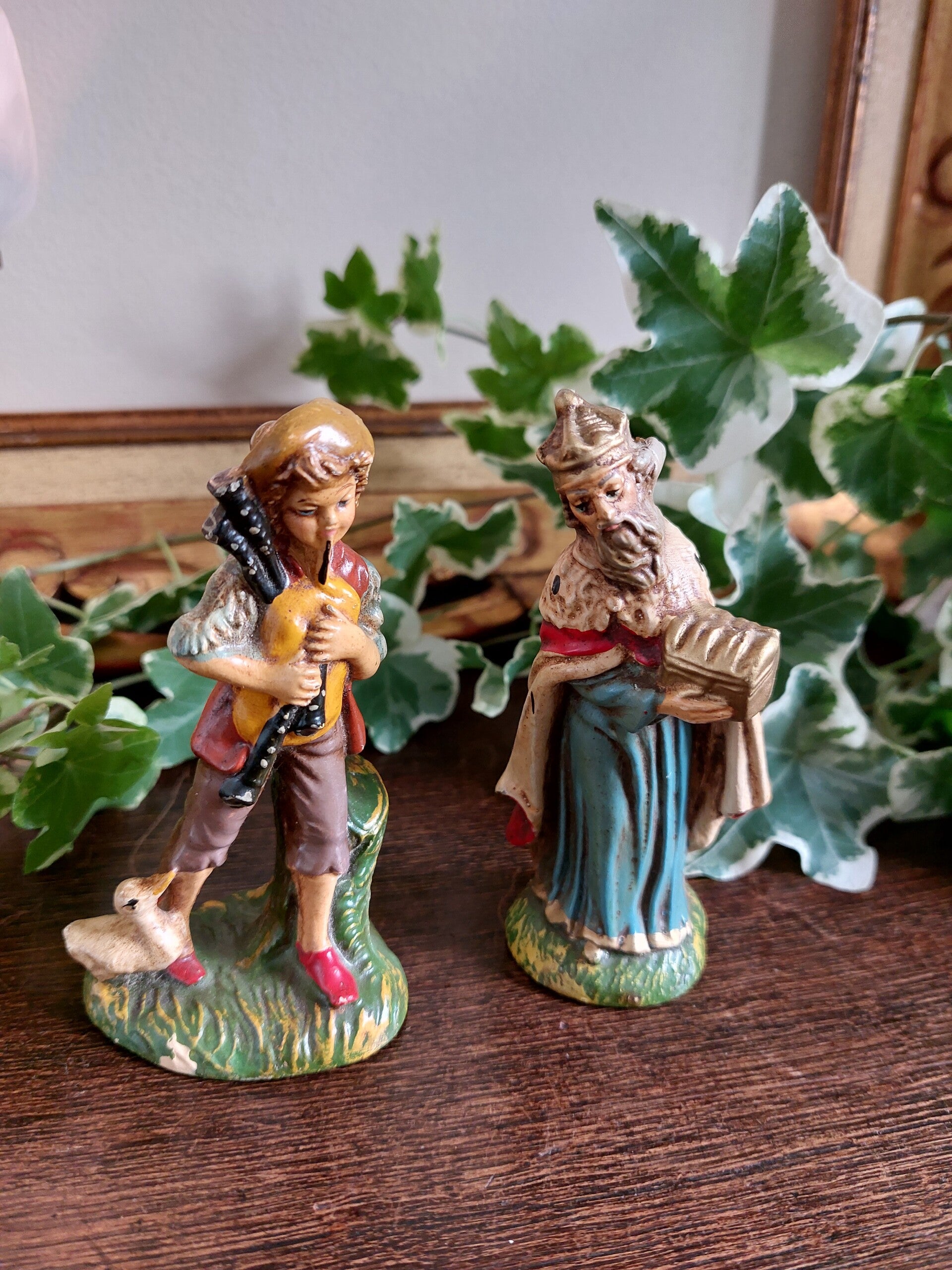 14 delige vintage Italiaanse kerststal figuren. Wat een beauty s en kijk eens naar de kleuren en de decoraties op de figuren. Wat zijn ze prachtig gekleed. Van een gansje aan de voet en een schaapje bij de herder tot de cadeau s in de handen van de koningen. Echt zooooo moooiii. Gemaakt van kunststof.