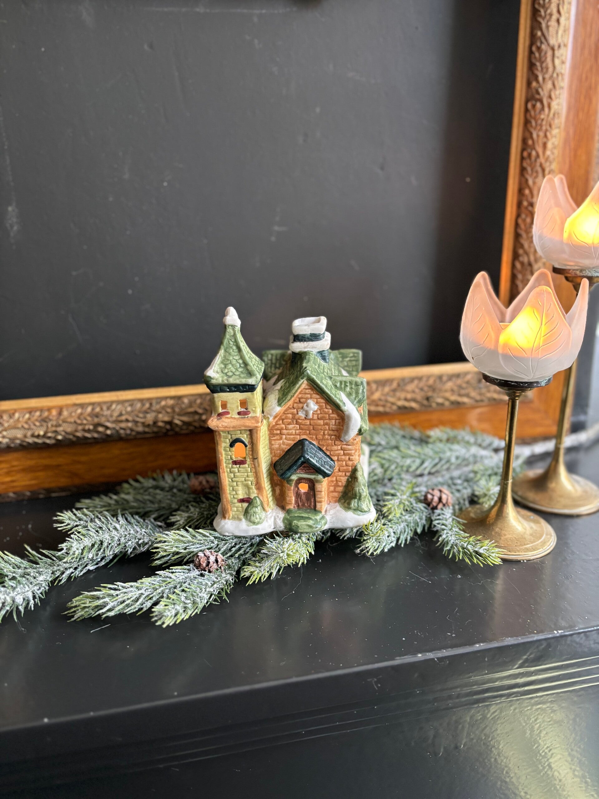 Groen waxinelicht huisje, helemaal in kerst sferen, wat een lief pareltje!