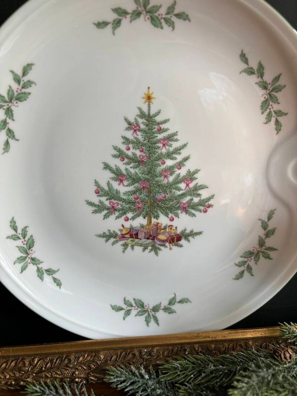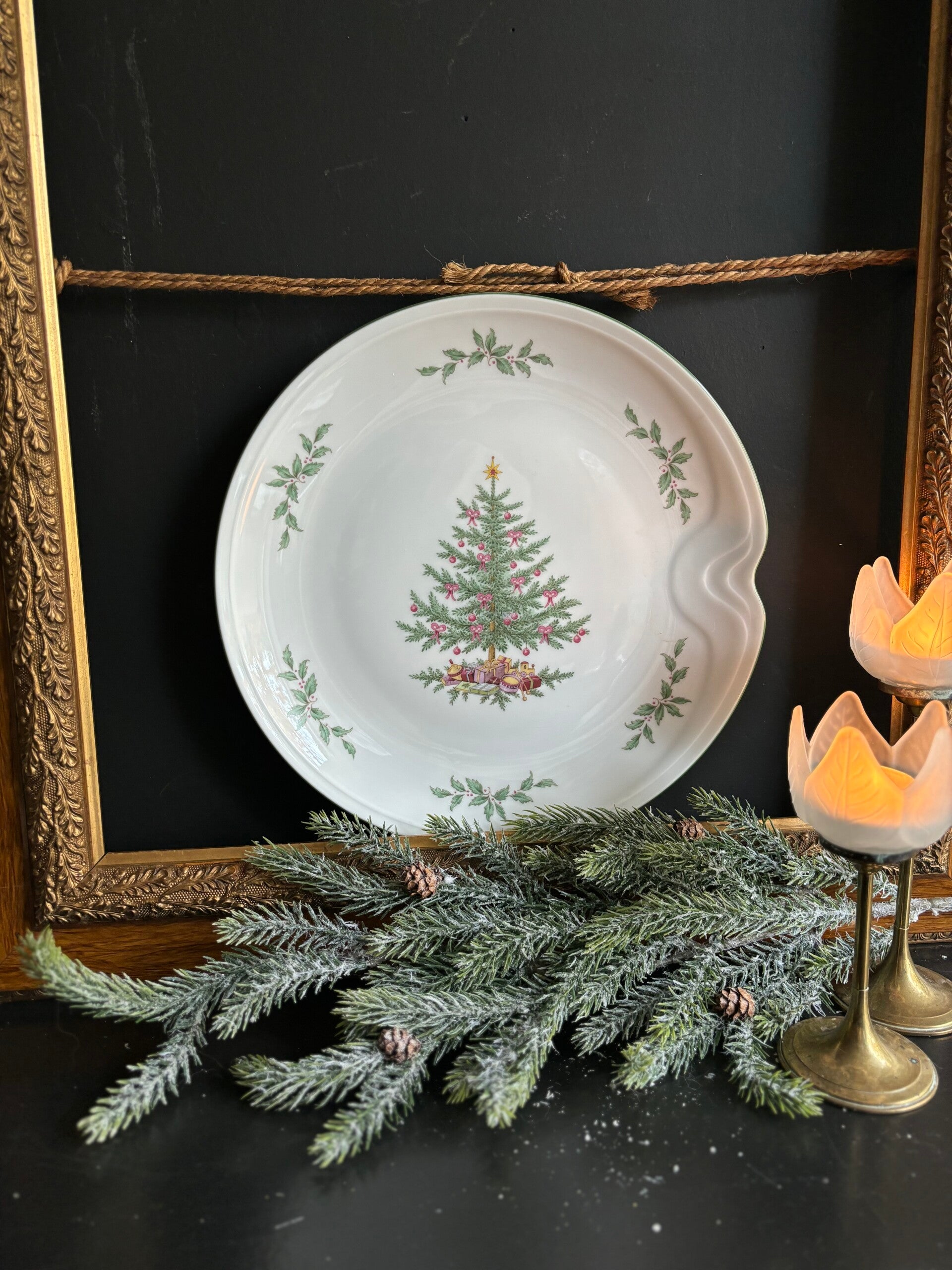 Wat een leuk kerstbord is dit! Van het West-Duitse Kaiser en beschilderd met kerstboom en hulst. Leuk op de kerst tafel!