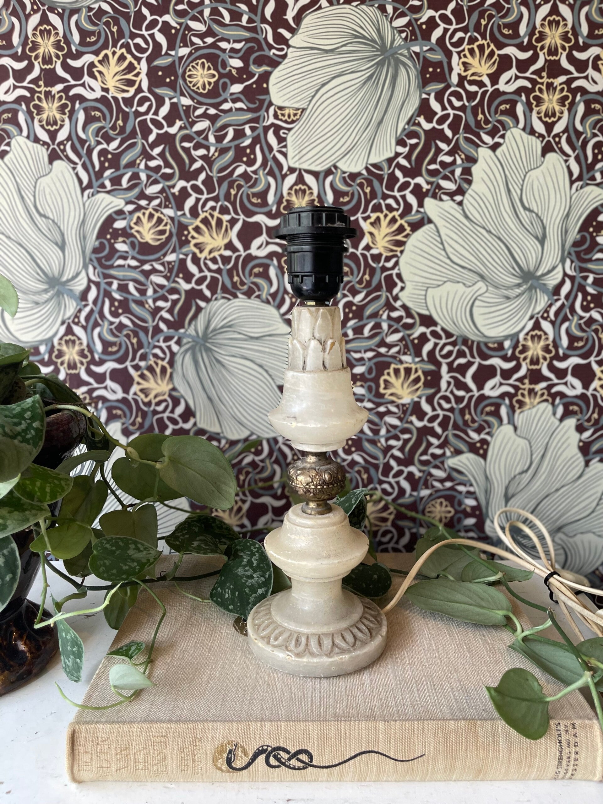 Prachtige marmeren lampvoet. Met mooie bewerkingen in het marmer. Mooi met een kleurrijke kap met print, maar met een effen kap laat je de lampvoet weer shinen.