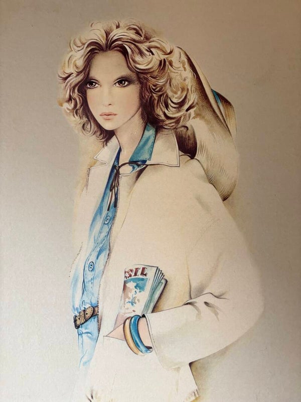 Plaat met cowgirl, helemaal in vintage look! Zo zonder lijst heel leuk om neer te zetten, maar met lijst vast ook te mooi. Het blauwe spat van de plaat af.