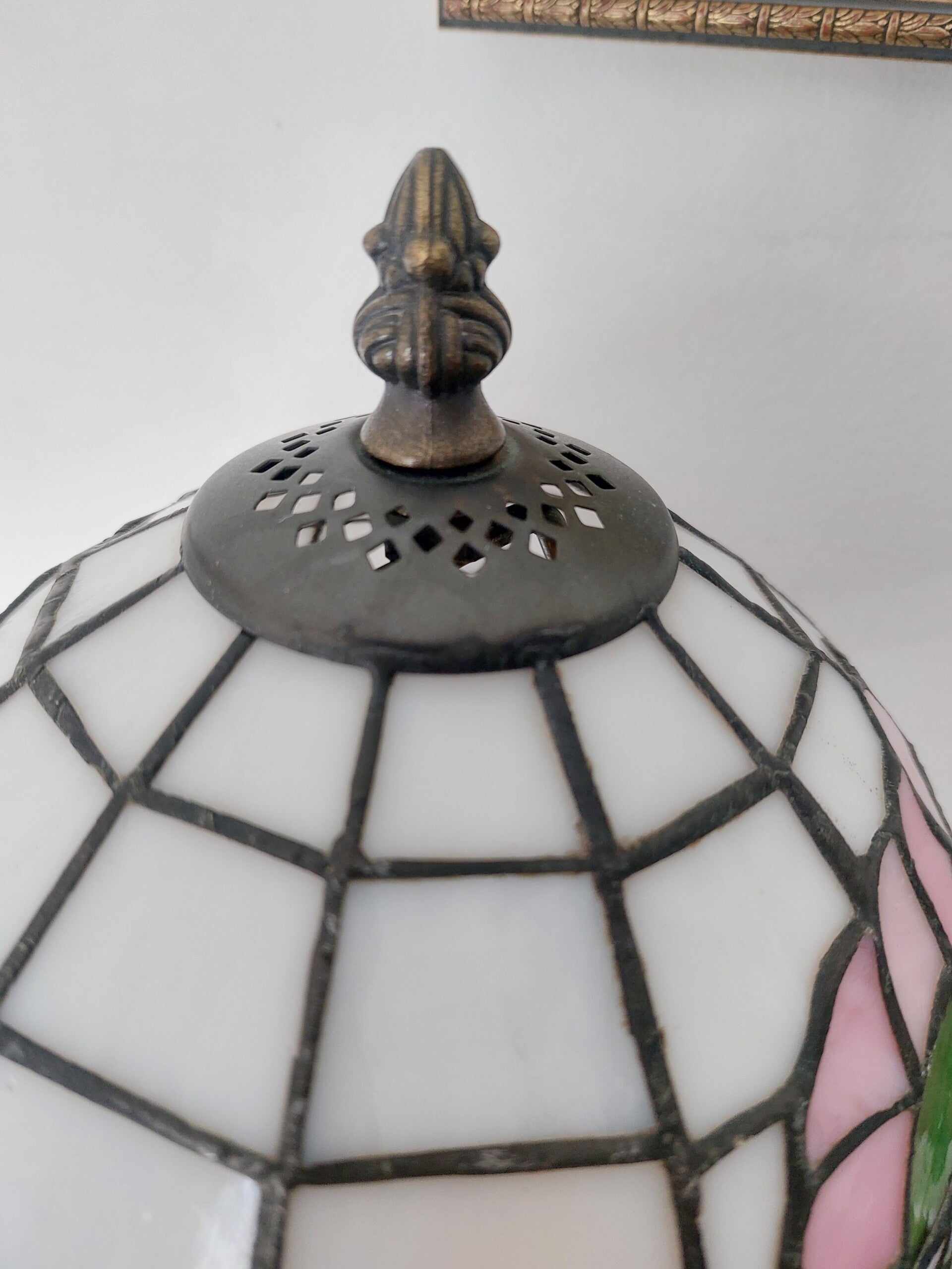 Deze 2 prachtige lampen gemaakt door Paul Neuhaus in Tiffany style geven een mooi sfeervol licht. Gemaakt van metaal en de kap is van glas in lood. Zachte pastel tinten.