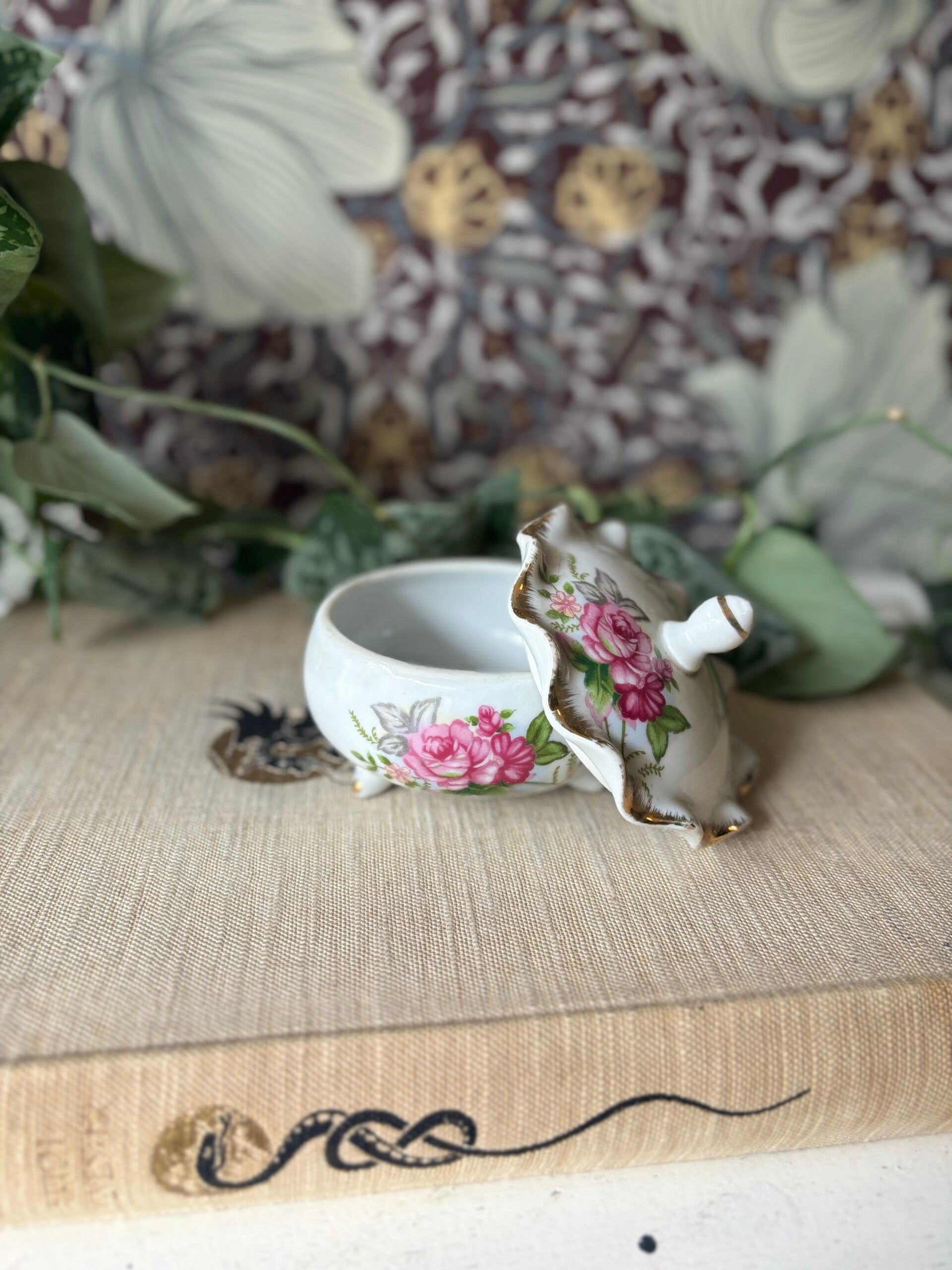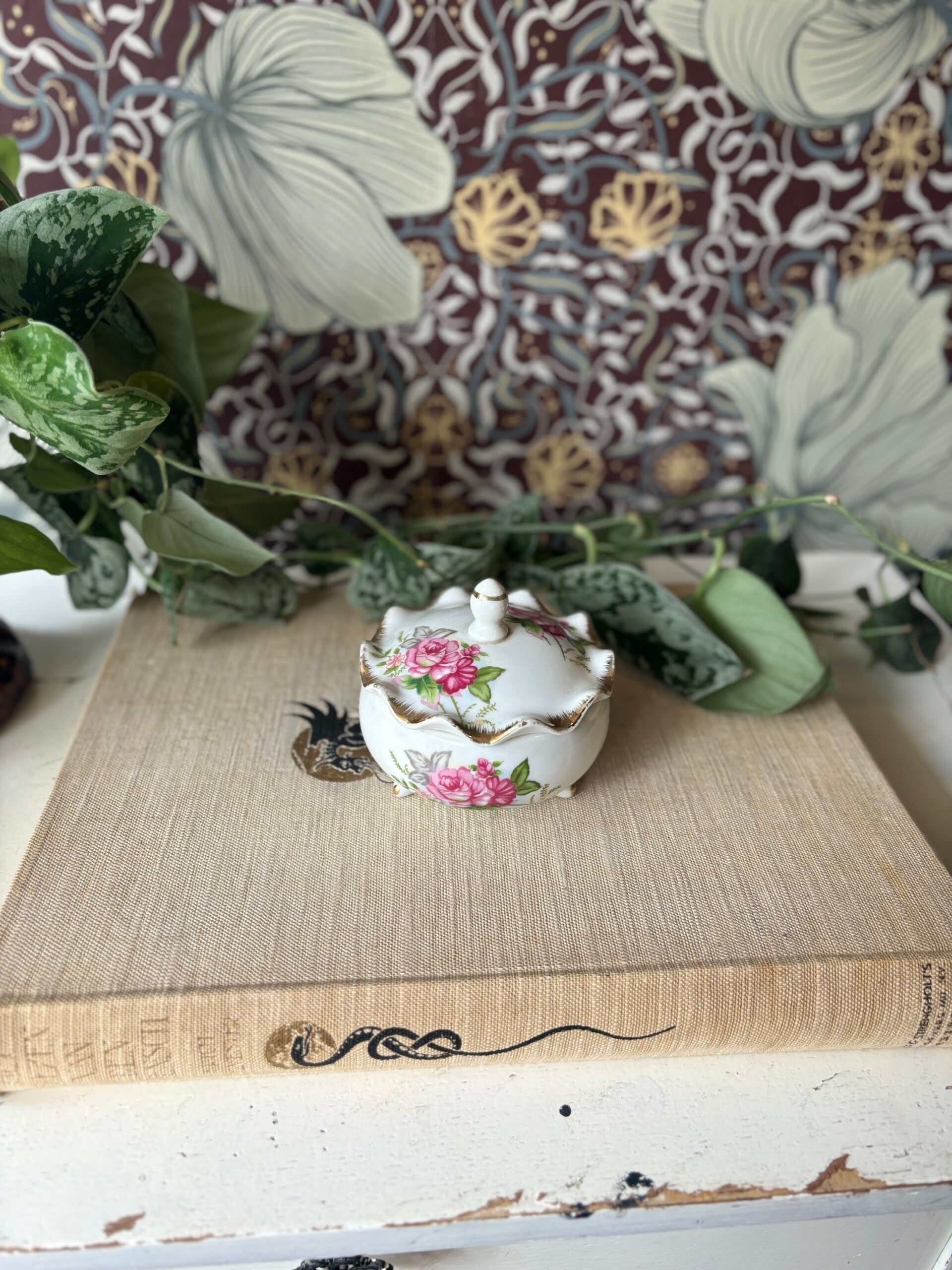 Hoe leuk is dit porseleinen bakje van Versailles. Meer vintage dan dit ga je niet krijgen, de "ouderwetse" bloemen en touch of gold maken het helemaal af. Ideaal om sieraden in te bewaren.