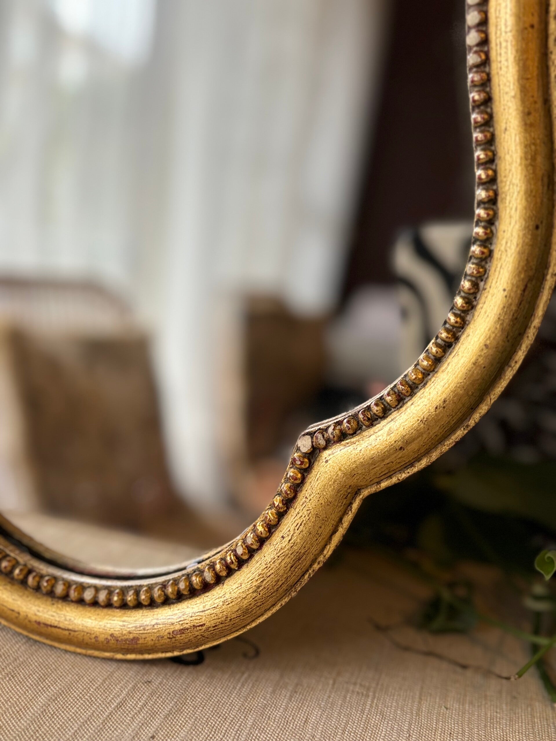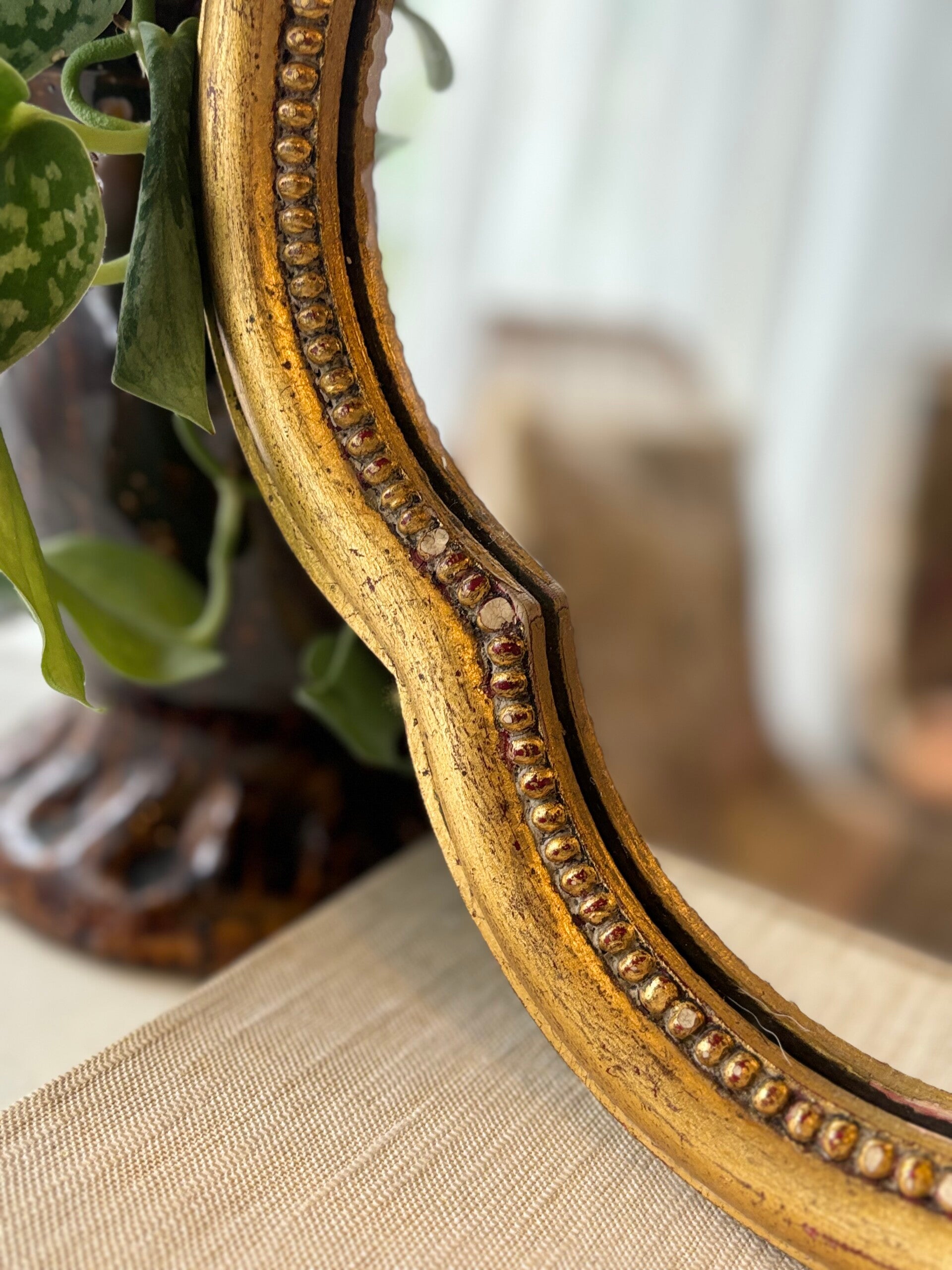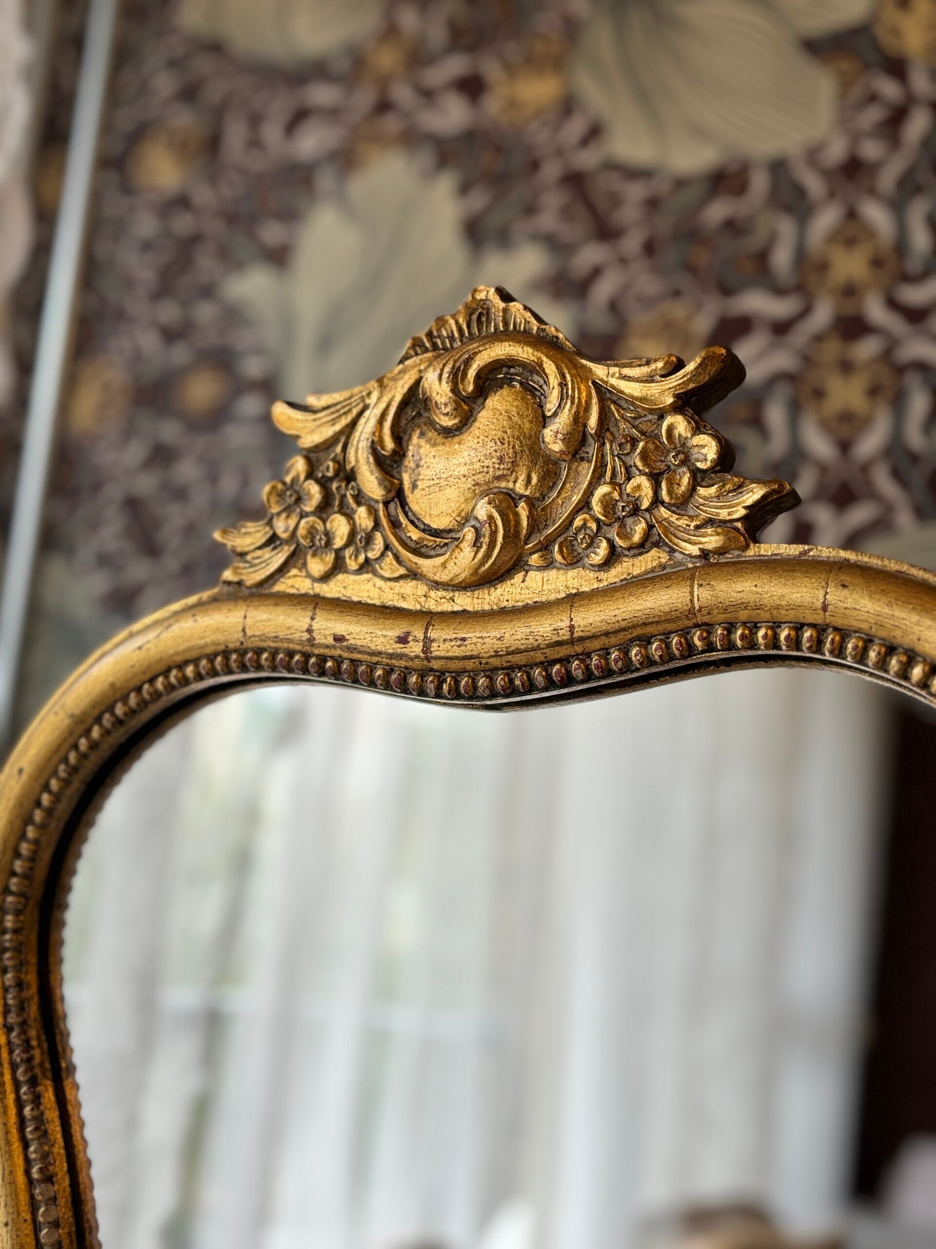 Prachtige houten spiegel in goudkleur. Het rozet aan de bovenkant geeft de vintage feeling, helemaal chique!