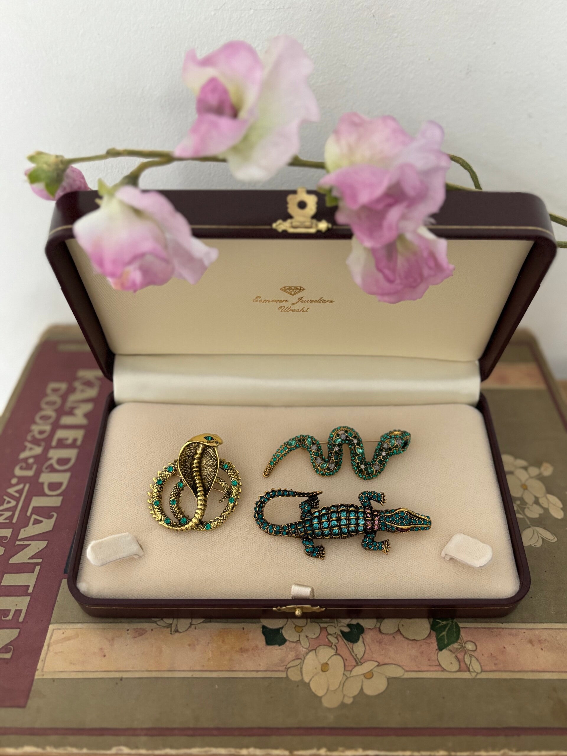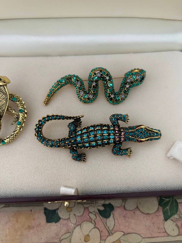 Ook deze broches zijn echte eyecatchers! Een slang met glimmende steentjes, een stoere cobra of de glimmende krokodil. Vrolijk je kleding op met deze leuke broches. Een must have voor deze winter