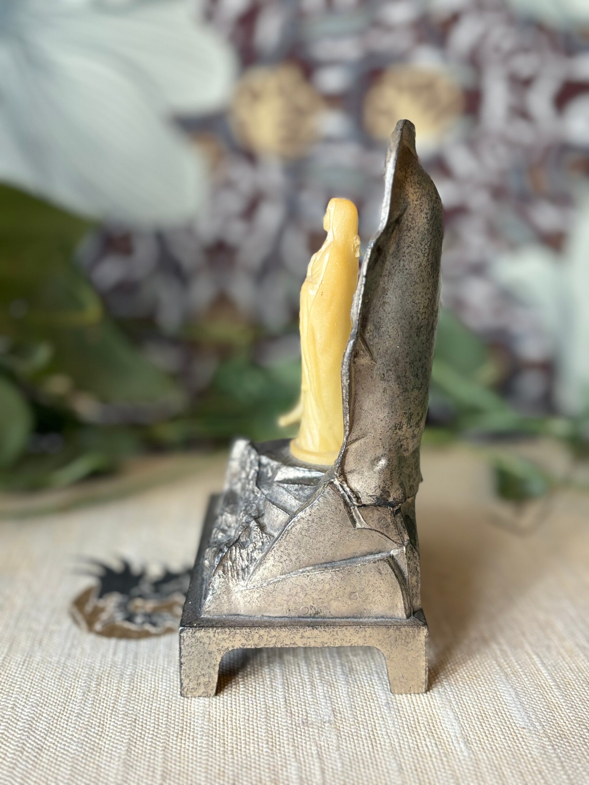Vintage Lourdes muziek doosje, symbool van Onze-Lieve-Vrouw van Lourdes. Het doosje verbeeld Bernadette tijdens de eerste verschijning van Maria. Uit het doosje klinken zachte en vredige tonen.