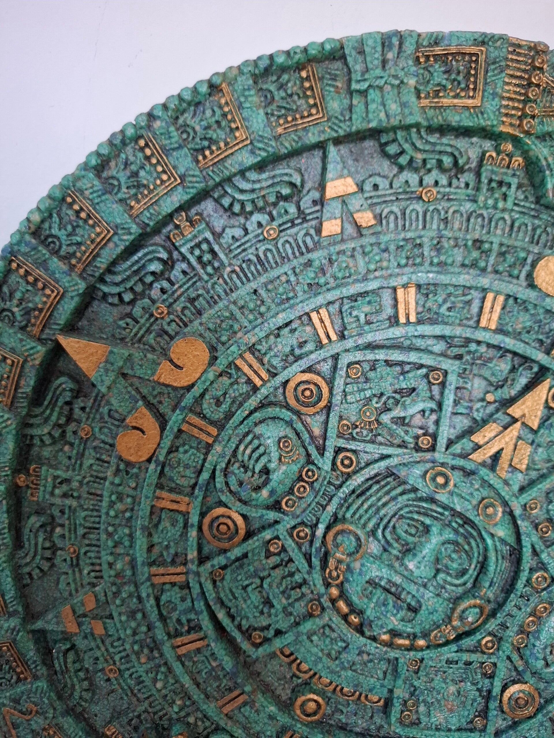 Wauw....wat een parel is deze Vintage Stone of the sun kalender. Een oneindige kalender gemaakt door de Maya bevolking. Geschatte periode rond 1960 en gemaakt van Malachiet. Een item die erg geliefd is op de veilingen.