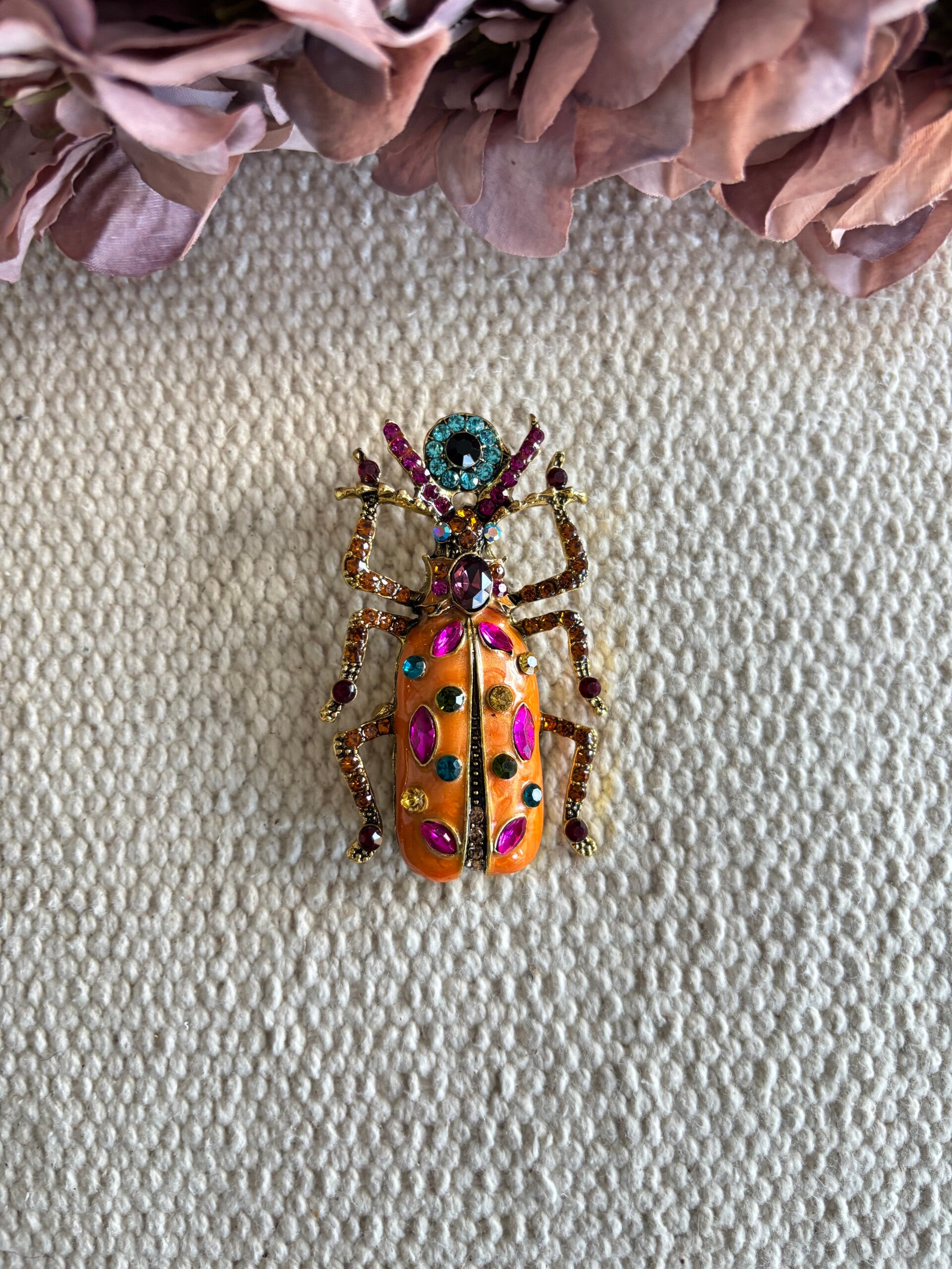 Deze kleurige kever fleurt elk jasje, tasje of blouse helemaal op!