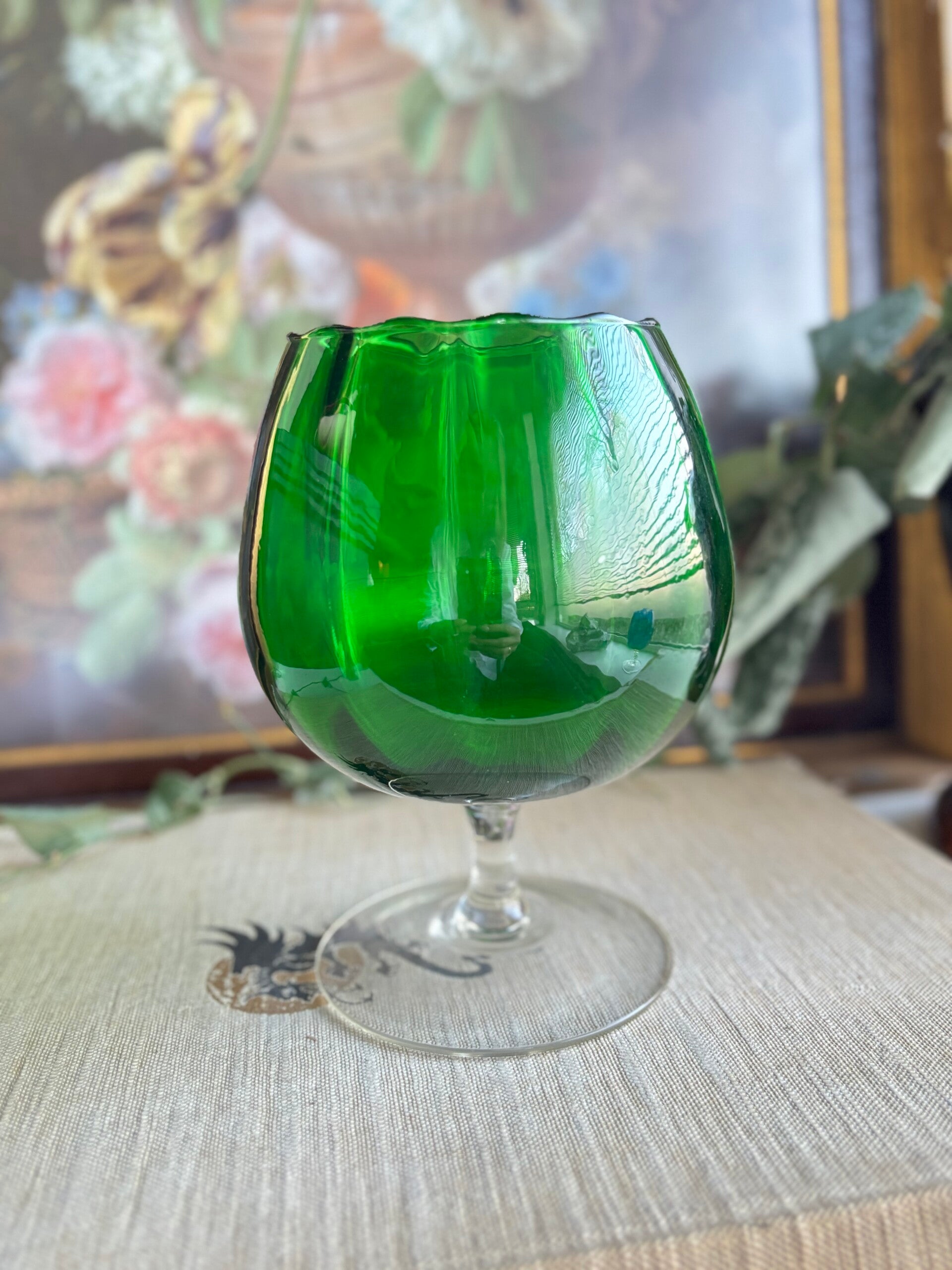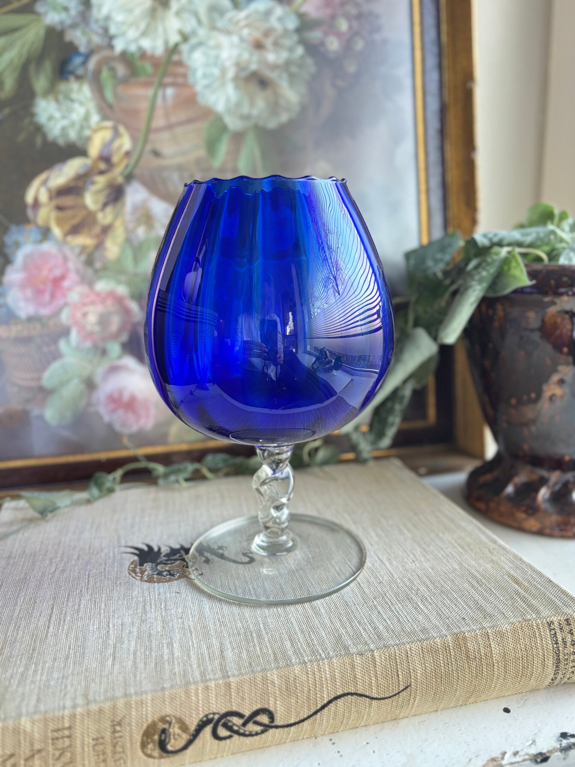 Prachtige handgeblazen vazen van Italiaans glas uit de jaren '50-'60. De voet van de kobaltblauwe vaas is gedraaid. Leuk met bloemen, maar ook zonder een kleurige eyecatcher! De vazen zijn los te koop.