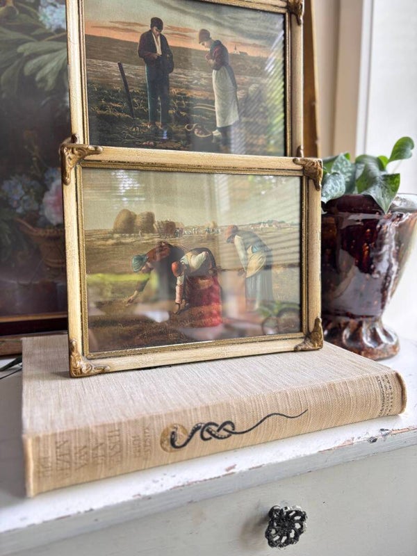 Prenten van JF Millet. Op de ene prent vrouwen werkende op het land, op de andere een boer en boerin. Beide in mooie vintage lijstjes. Los te koop, beide lijstjes hebben hier en daar een vintage oneffenheid.