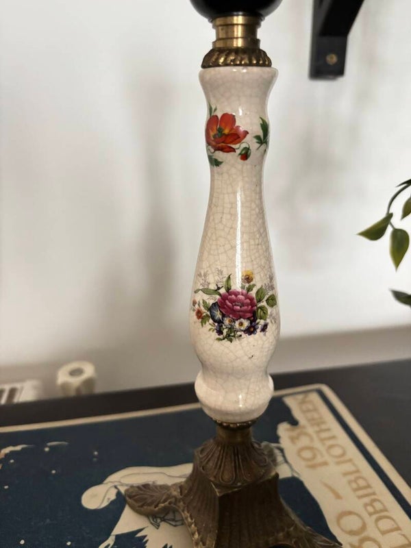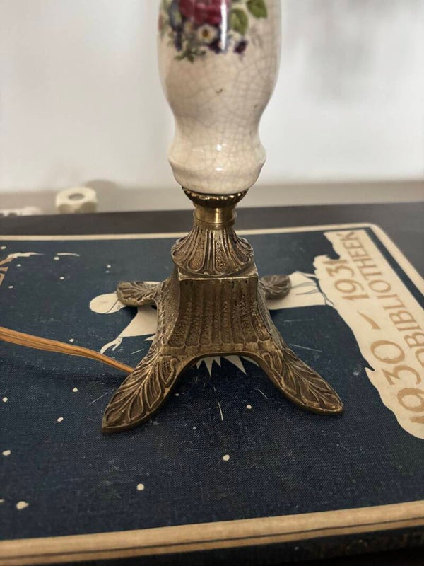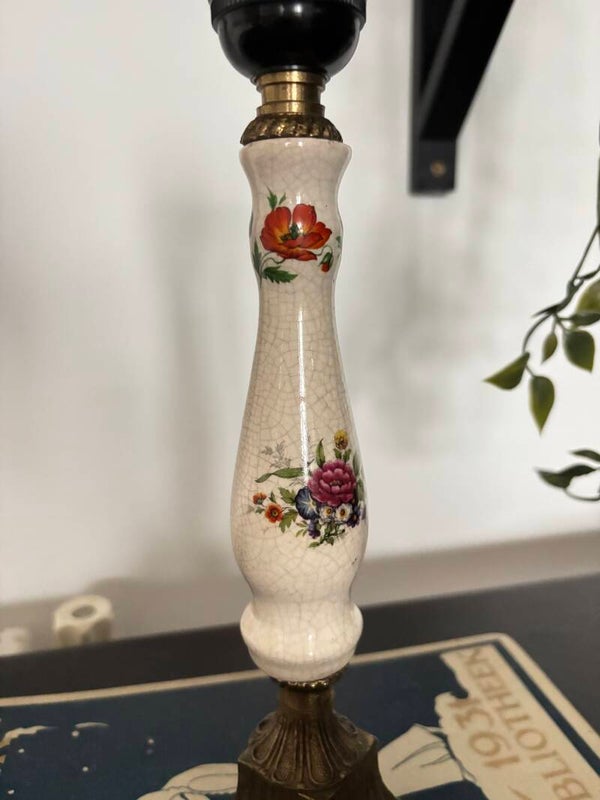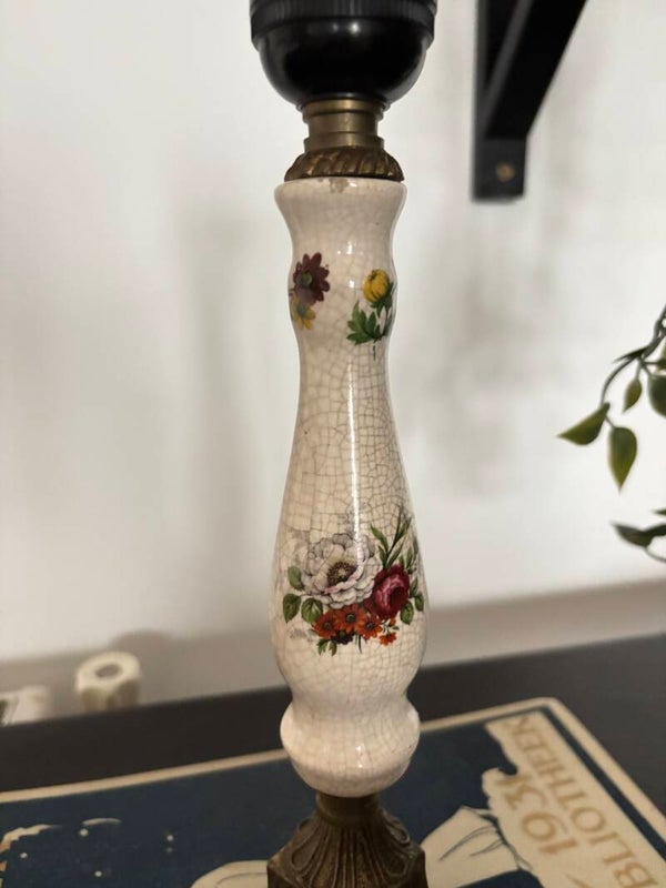Porseleinen craquelé lampvoet met vintage bloemen. Het voetje is floral stijl 🌸🌺🌻🌷
